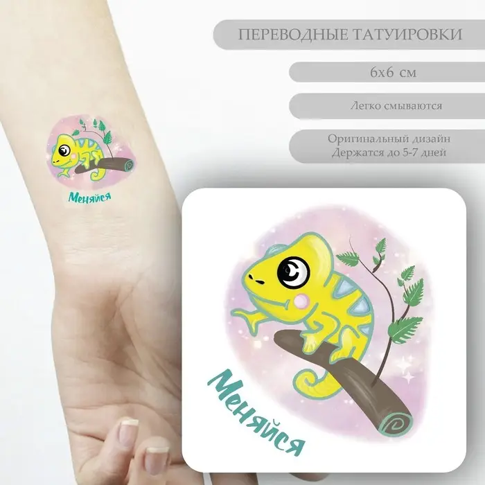 Переводная тату на тело цветная «Хамелеон на ветке: Меняйся», 6×6 см