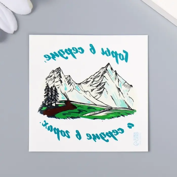 Переводная тату на тело цветная «Горы в сердце, а сердце в горах», 6×6 см