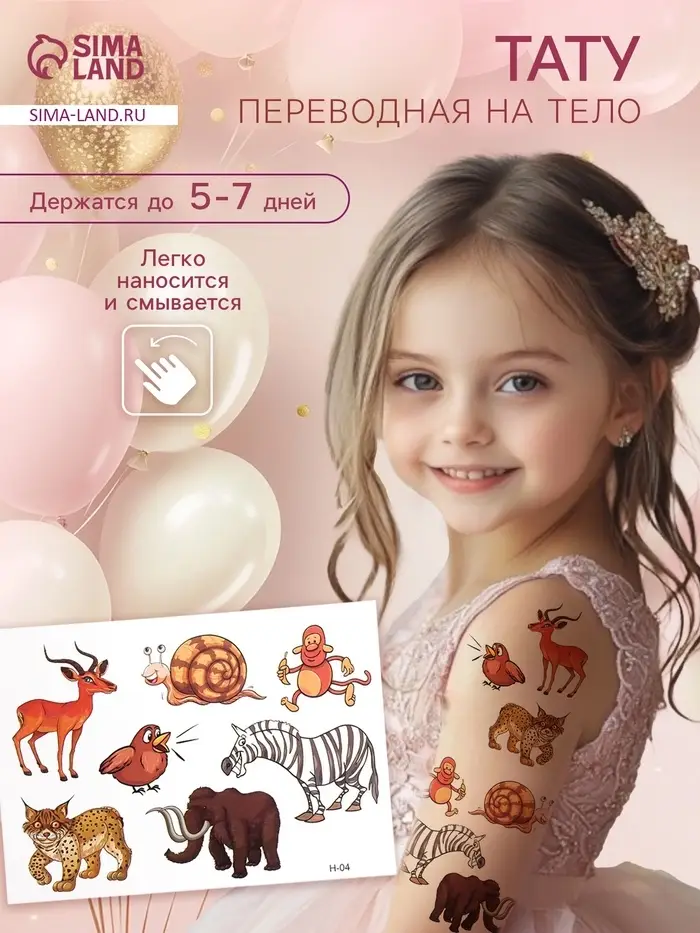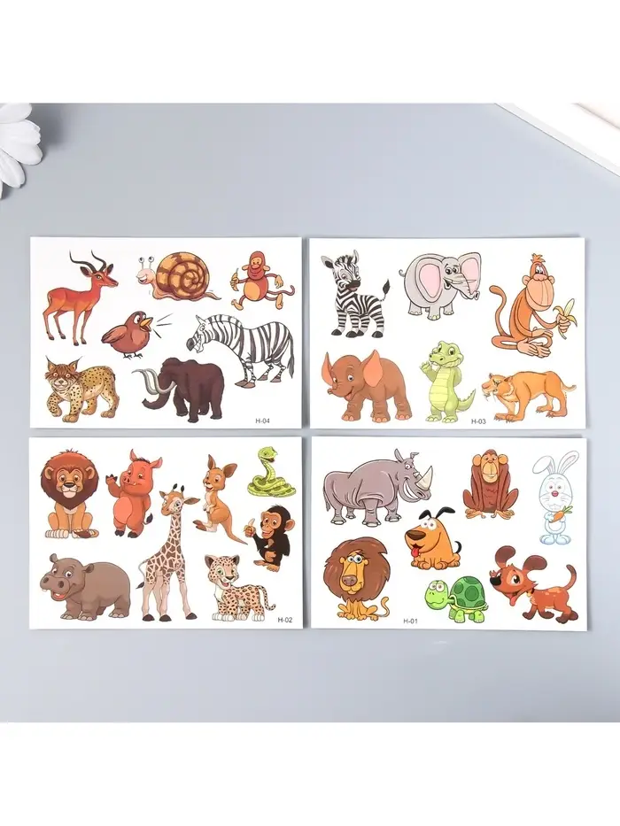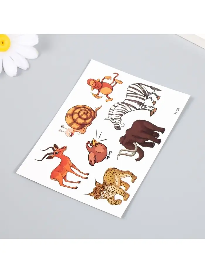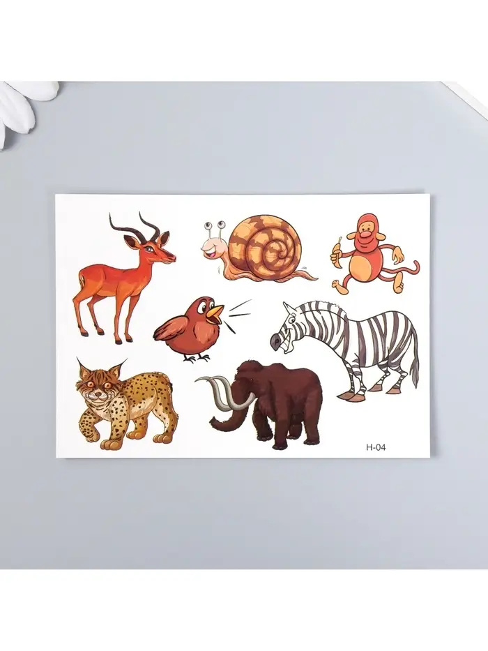 Татуировка на тело цветная "Забавные звери" 11,5х8 см МИКС