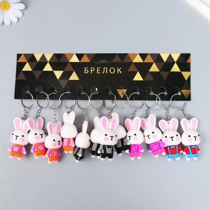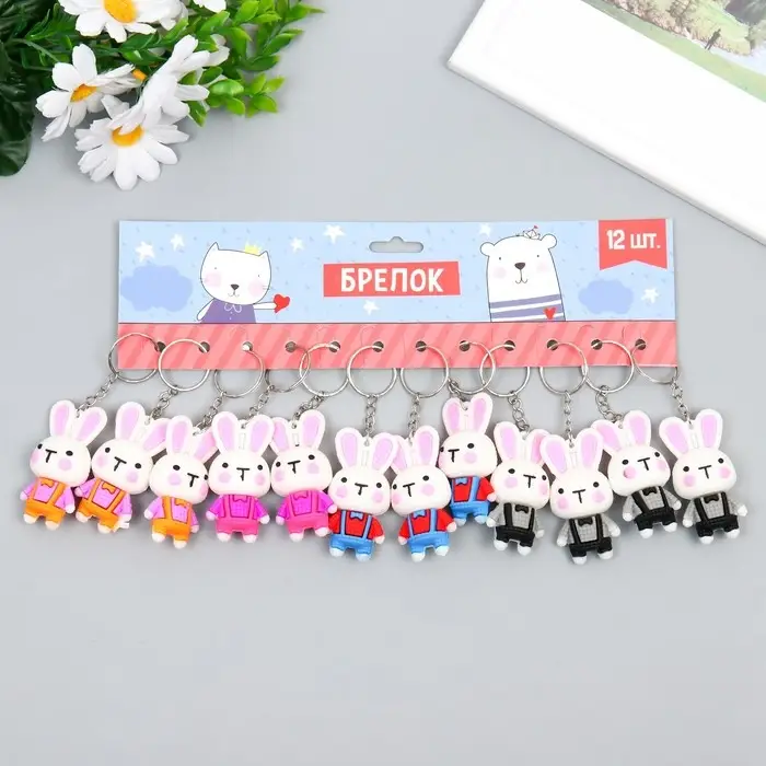 Брелок резина "Зайчик в комбинезоне" МИКС 3х1,7х6 см