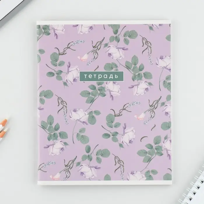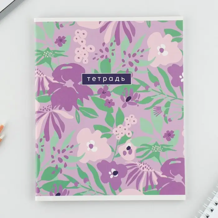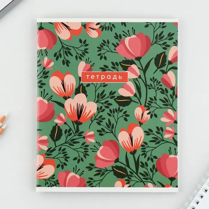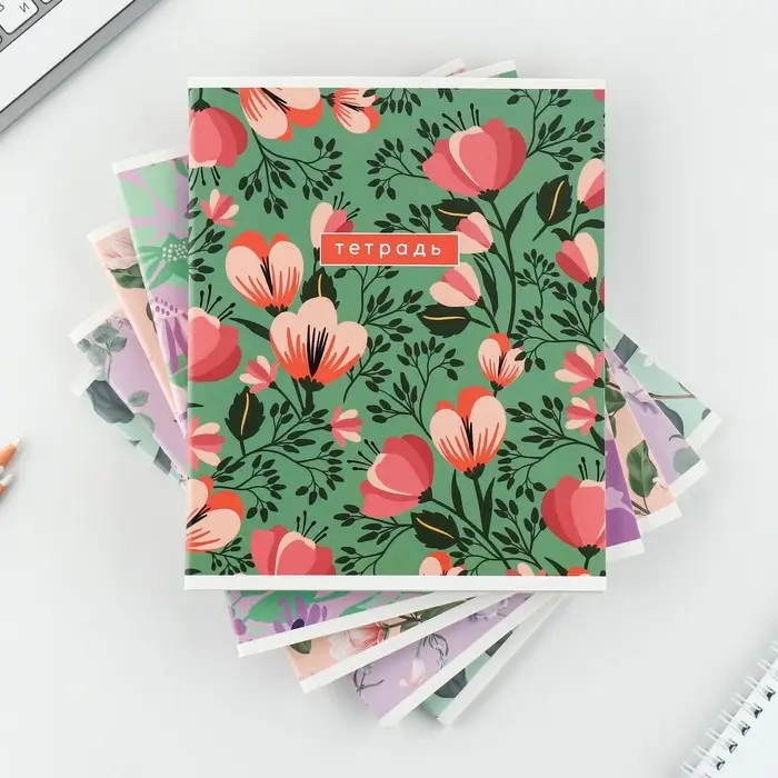 Тетрадь в клетку, 48 л., А5, на скрепке, блок №2 «Цветы» МИКС