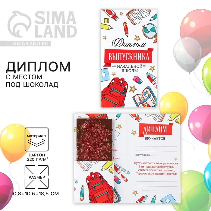Диплом с местом под шоколад на Выпускной «Выпускник начальной школы», 220 гр/ кв. м