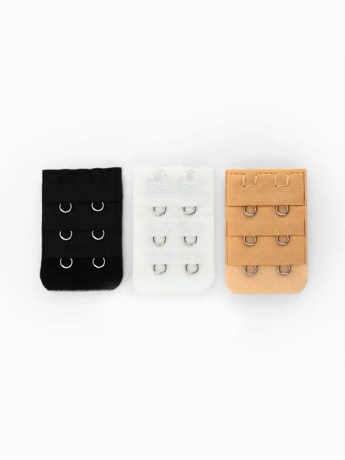 Застёжка-удлинитель для бюстгальтера, 3 ряда 3 крючка, 5 × 10,5 см, 3 шт, цвет чёрный/белый/бежевый