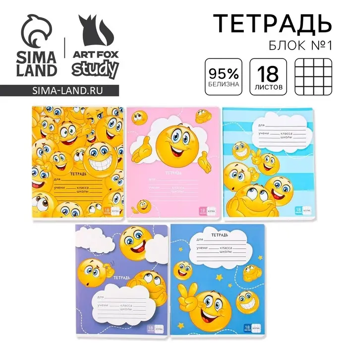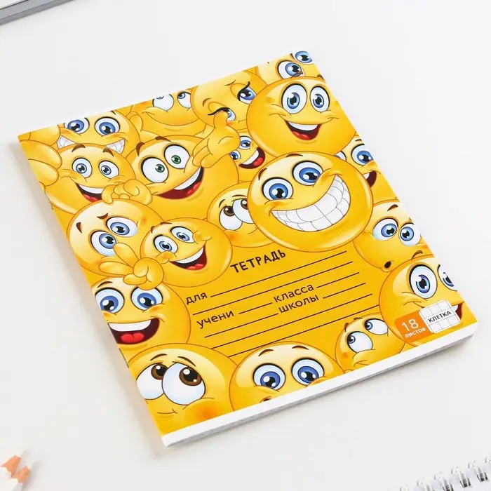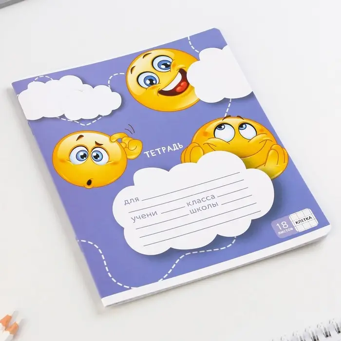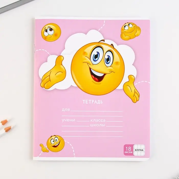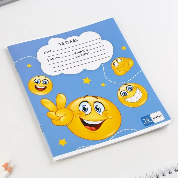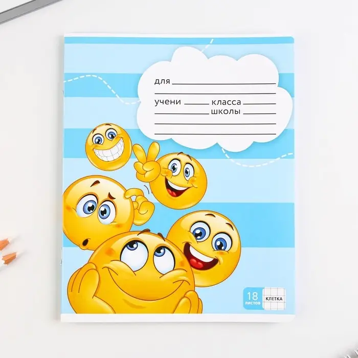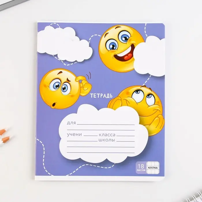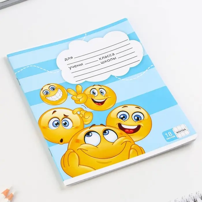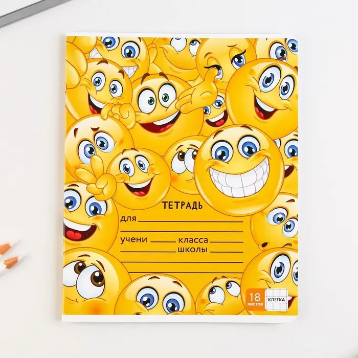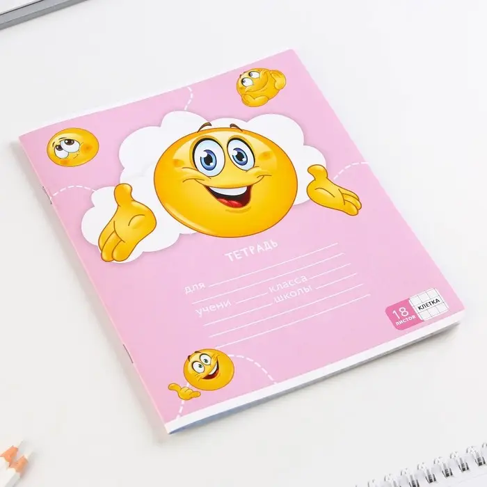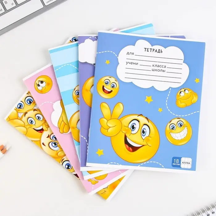 Тетрадь в клетку 18 листов А5, на скрепке «Смайлы», 5 видов, белизна 96%, МИКС