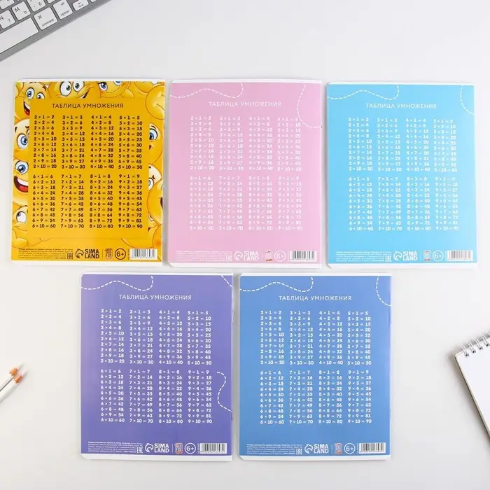 Комплект тетрадей из 10 штук (5 видов по 2 штуки), 48 листов в клетку Calligrata "Смайлики", обложка мелованный картон, блок офсет