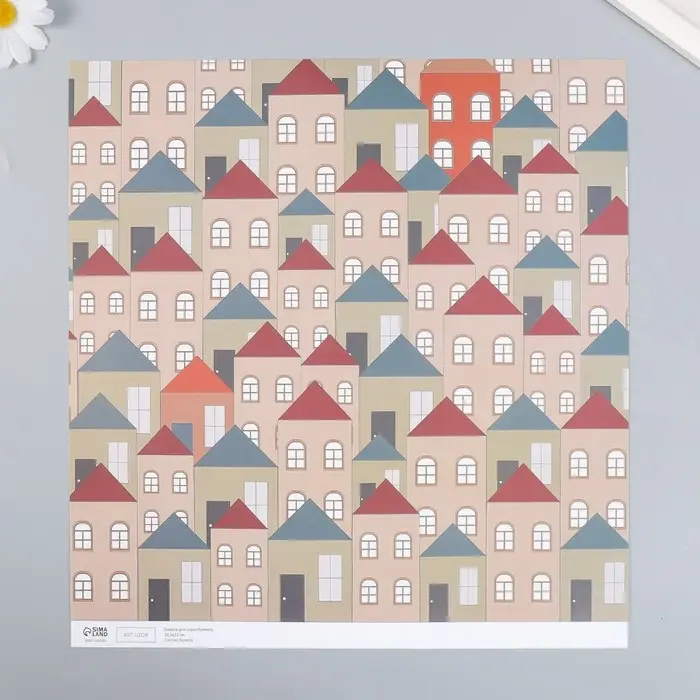 Бумага для скрапбукинга "Домики" плотность 180 гр 30,5х32 см