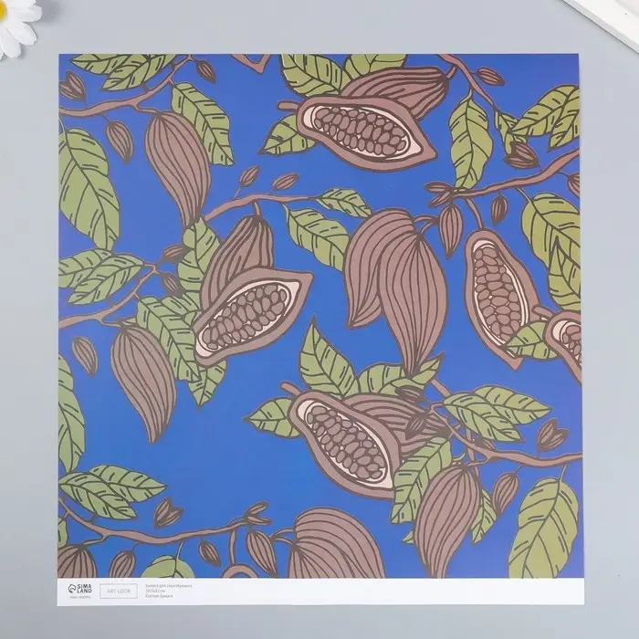 Бумага для скрапбукинга "Какао на синем" плотность 180 гр 30,5х32 см