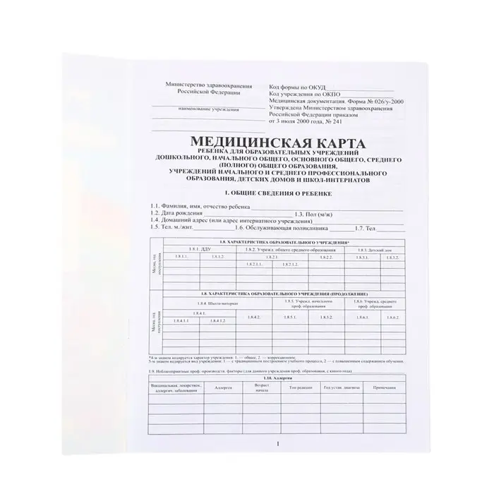 Медицинская карта ребёнка А4, 16 листов на скрепке, обложка картон
