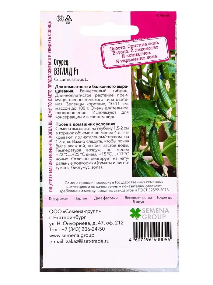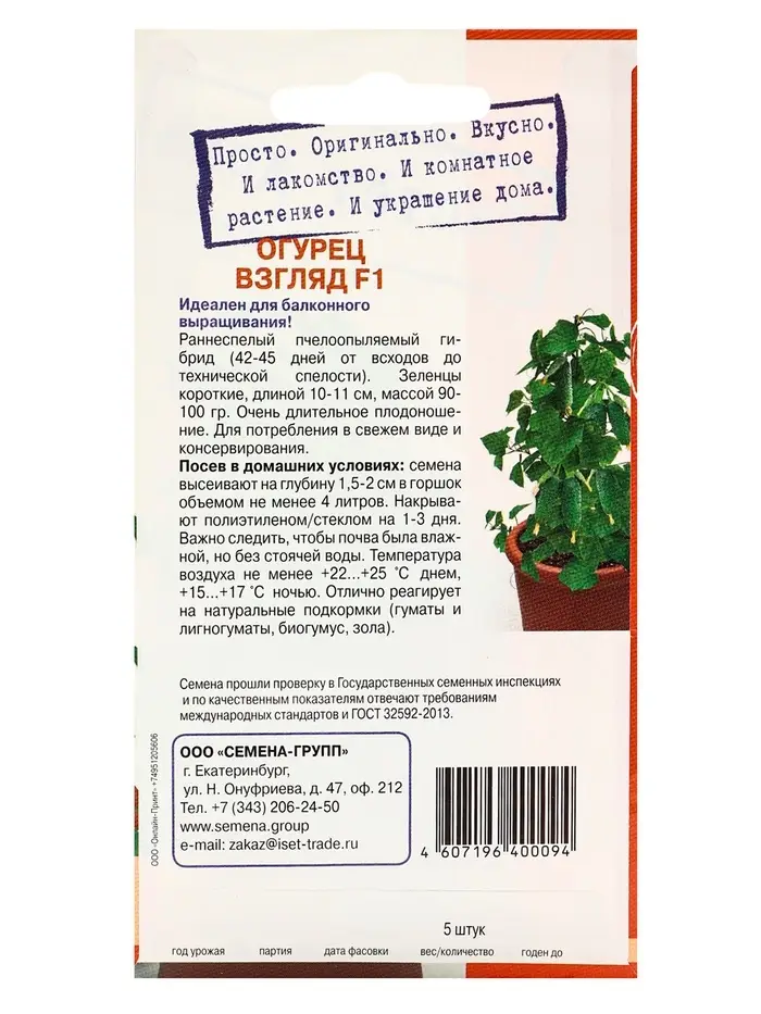 Семена "Растёт дома!" Огурец Взгляд, F1 5 шт.