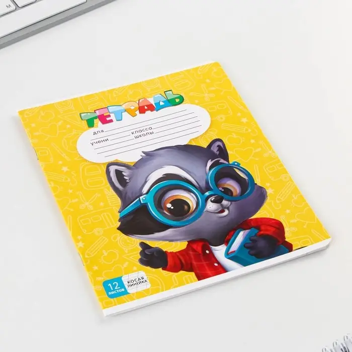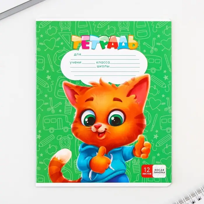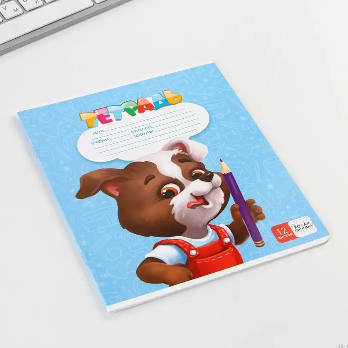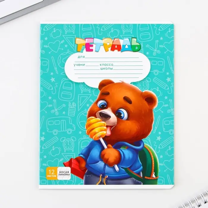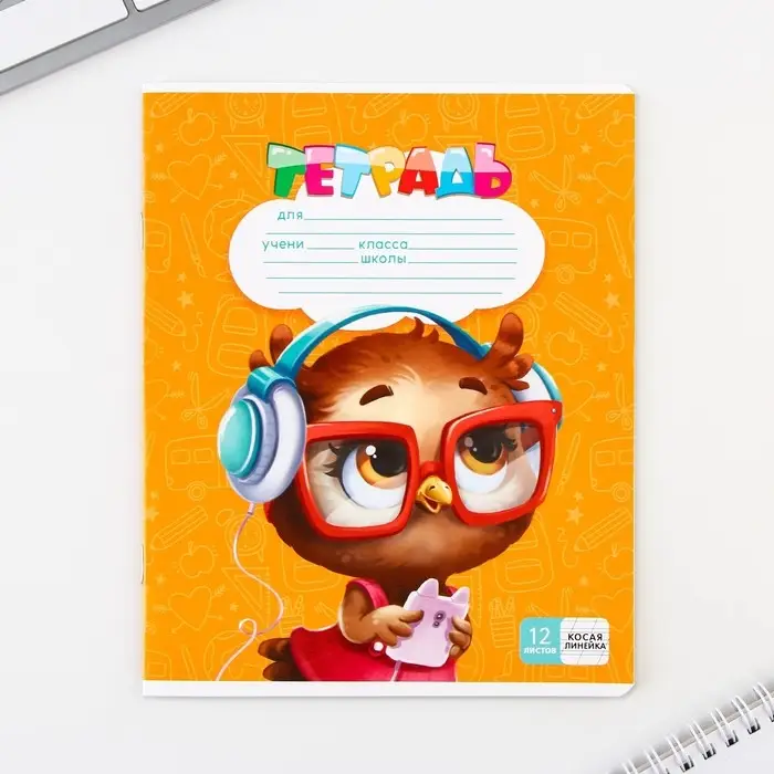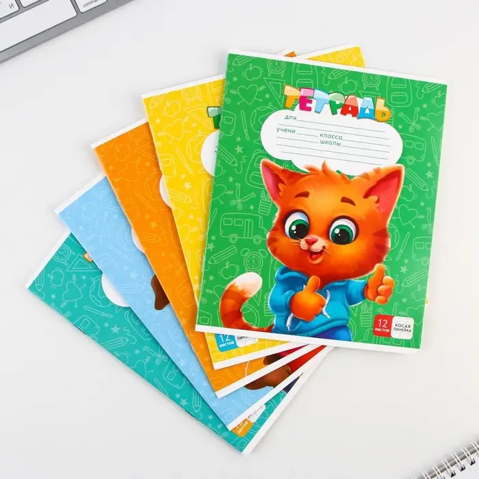 Тетрадь в косую линейку 12 листов, А5, на скрепке, 5 видов, белизна 96%, МИКС