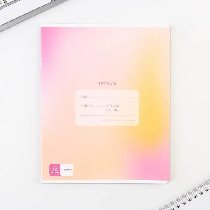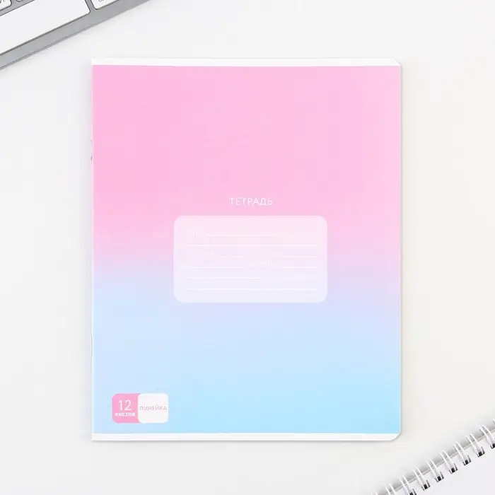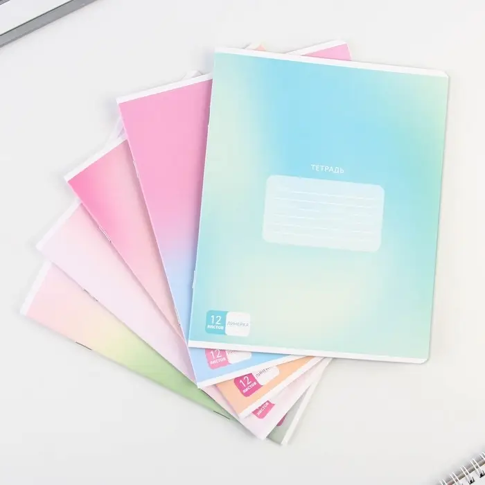 Тетрадь в линейку 12 листов А5, на скрепке «Градиент», 5 видов, белизна 96%, МИКС