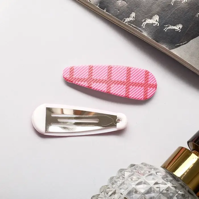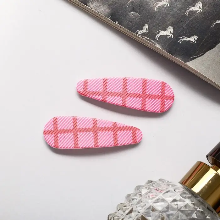 Невидимки для волос «Паула», набор 2 шт., клетка, 5 см, розовая