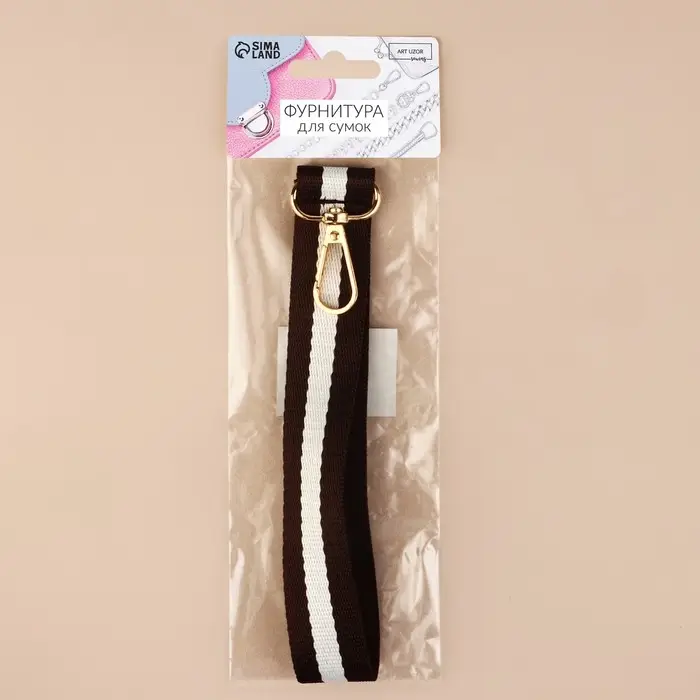 Ручка-петля для сумки, стропа, 20×2.5 см, коричневая, белая