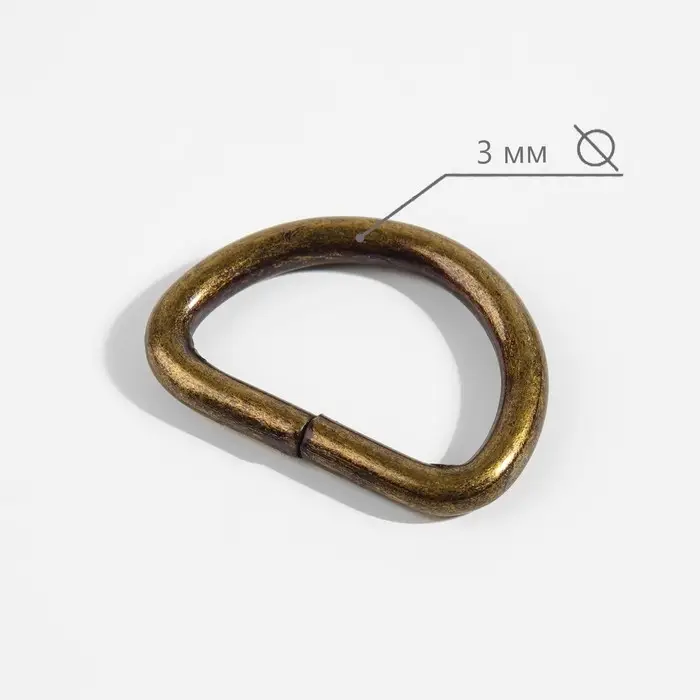 Полукольцо для сумок, d=20 мм, толщина - 3 мм, 10 шт., цвет антик