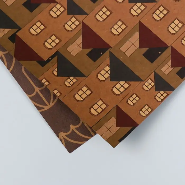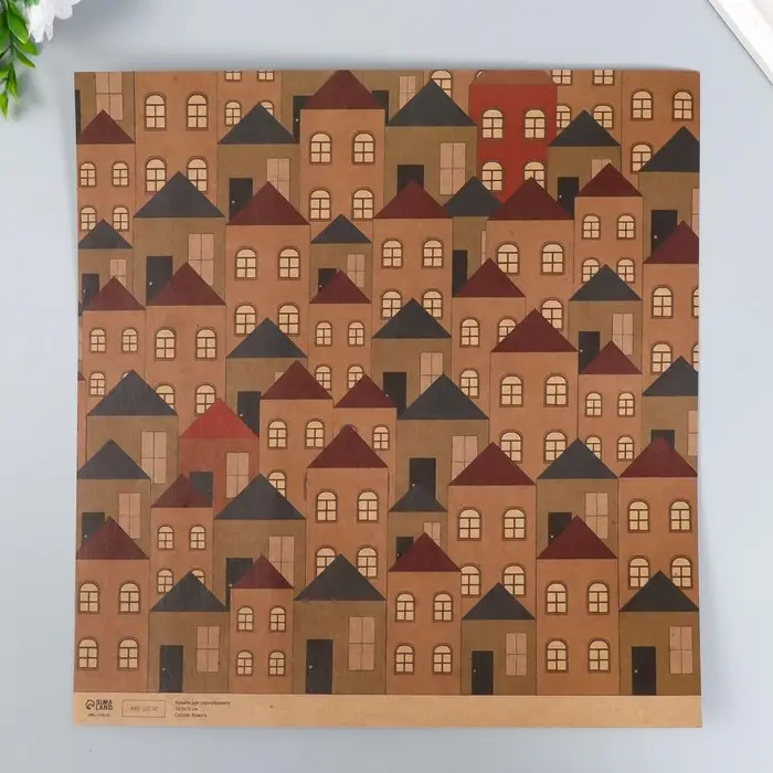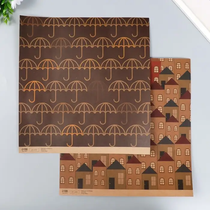 Бумага для скрапбукинга двусторонняя крафт "Домики и зонтики" плотность 180 гр 30,5х32 см