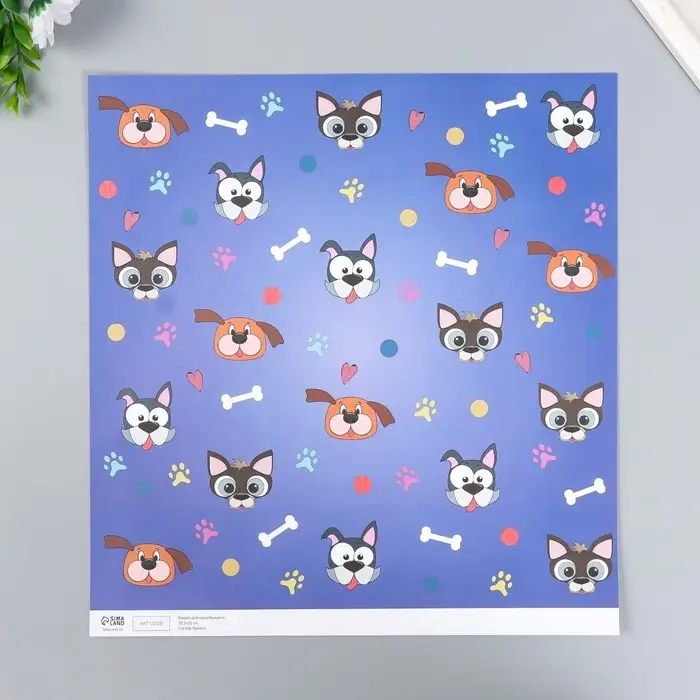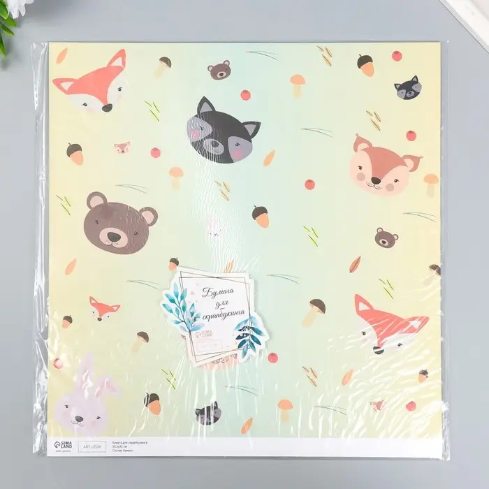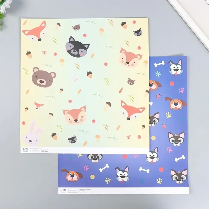 Бумага для скрапбукинга двусторонняя "Лесные звери и пёсики" плотность 180 гр 30,5х32 см