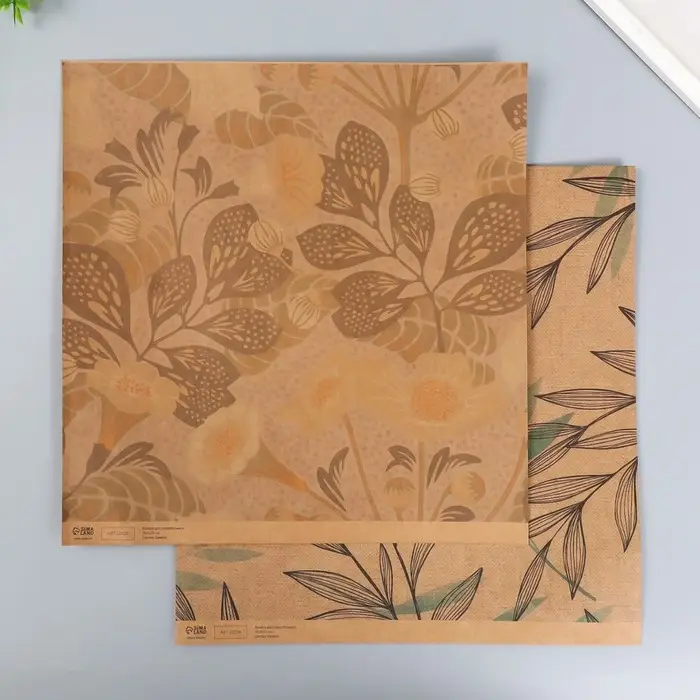 Бумага для скрапбукинга двусторонняя крафт "Флора" плотность 180 гр 30,5х32 см