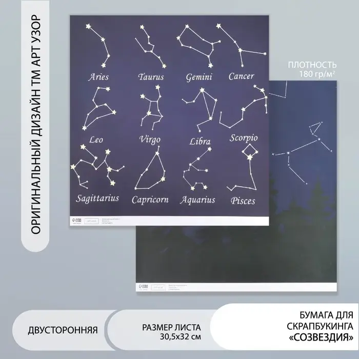 Бумага для скрапбукинга двусторонняя "Созвездия" плотность 180 гр 30,5х32 см