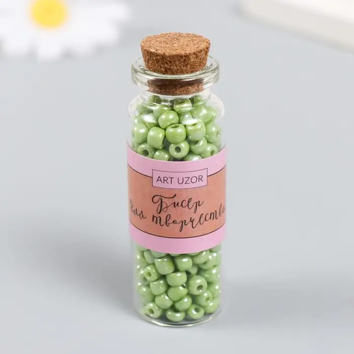 Бисер 6/0 в бутылочке "Спаржа" 20 гр керамический блеск 6х2х2 см