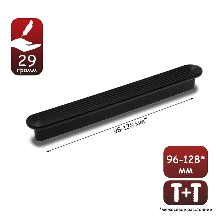 Ручка-скоба С-35, пластик 96 и 128 мм, чёрная, матовая