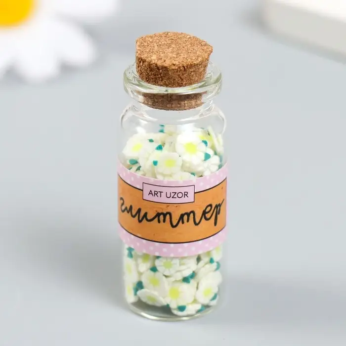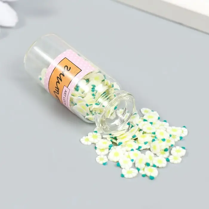 Декор для творчества пластик "Цветок. Бело-зелёная ромашка" набор 8 гр 5х2х2 см