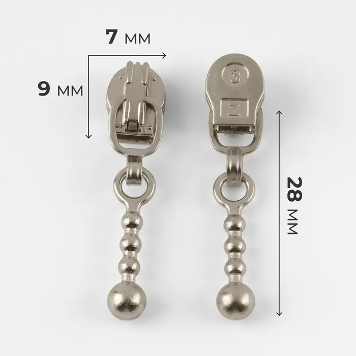 Бегунок для молнии «Спираль», №3, «Шарик», 10 шт., цвет никель