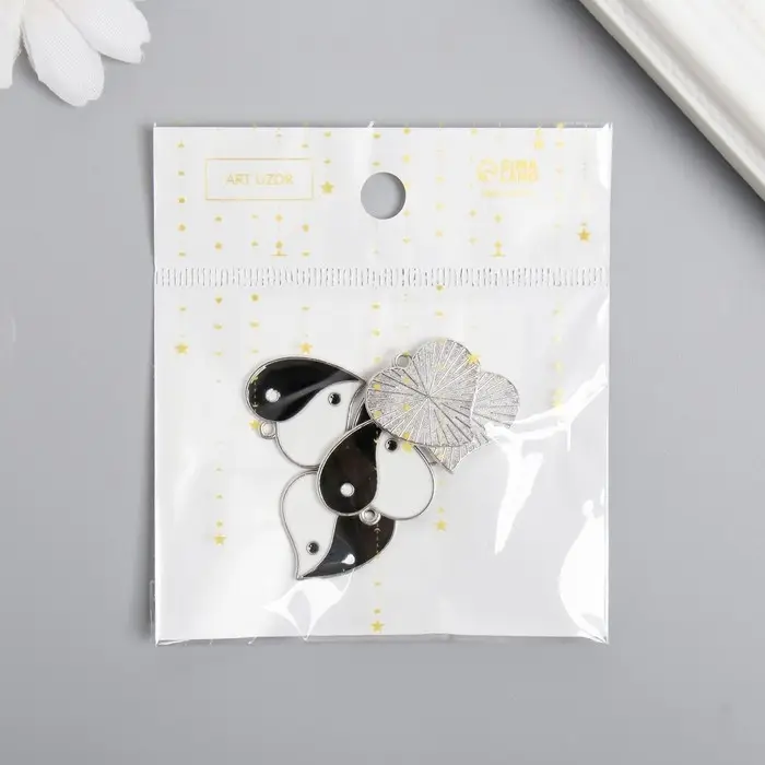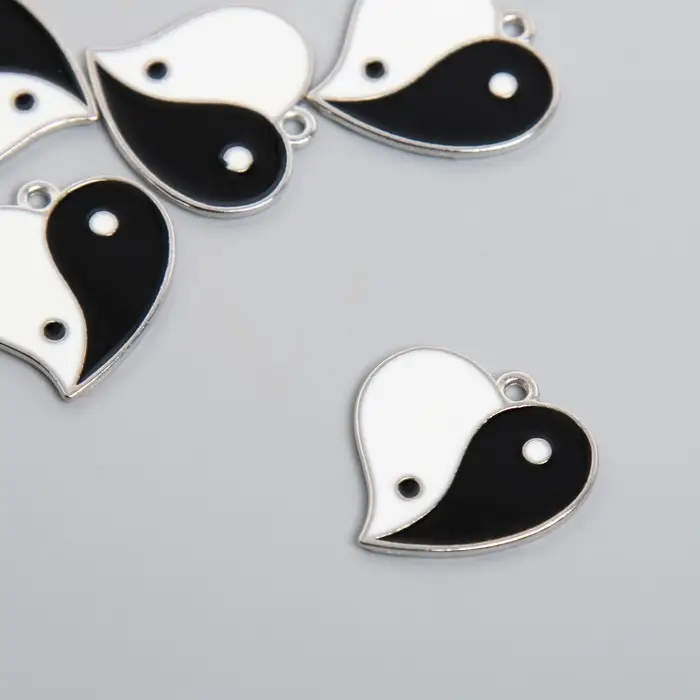 Металлический элемент, декоративная подвеска «Арт Узор. Инь-ян сердце», эмаль, серебро, 2.1×1.9 см