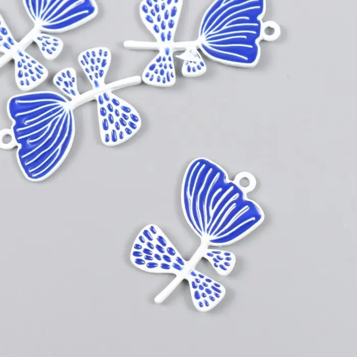Декор для творчества металл, эмаль "Бело-синий цветок" 2,2х3 см