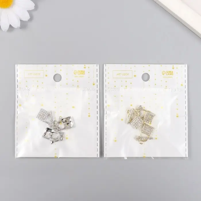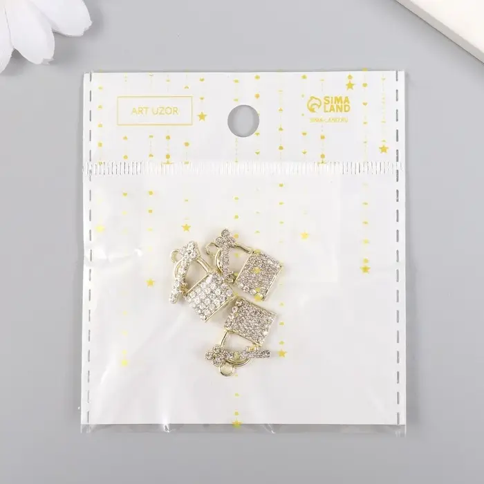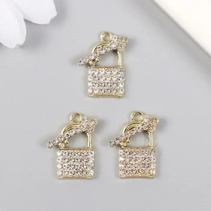 Декор для творчества металл, стразы "Замочек с ключиком" МИКС 1,5х1,9 см