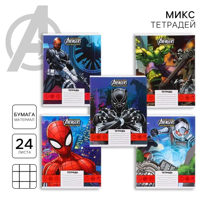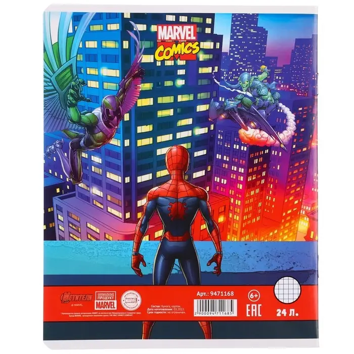 Тетрадь в клетку 24 листа, 5 видов МИКС, обложка мелованная бумага, «Человек-паук»