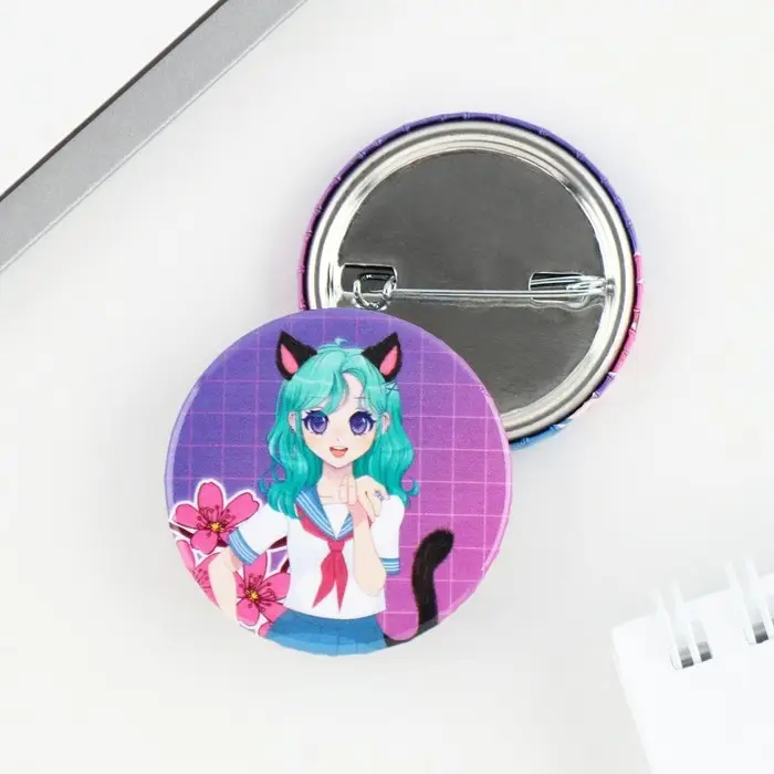 Значок закатной аниме «Девушка с ушками», d=3.8 см