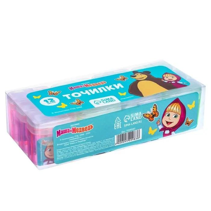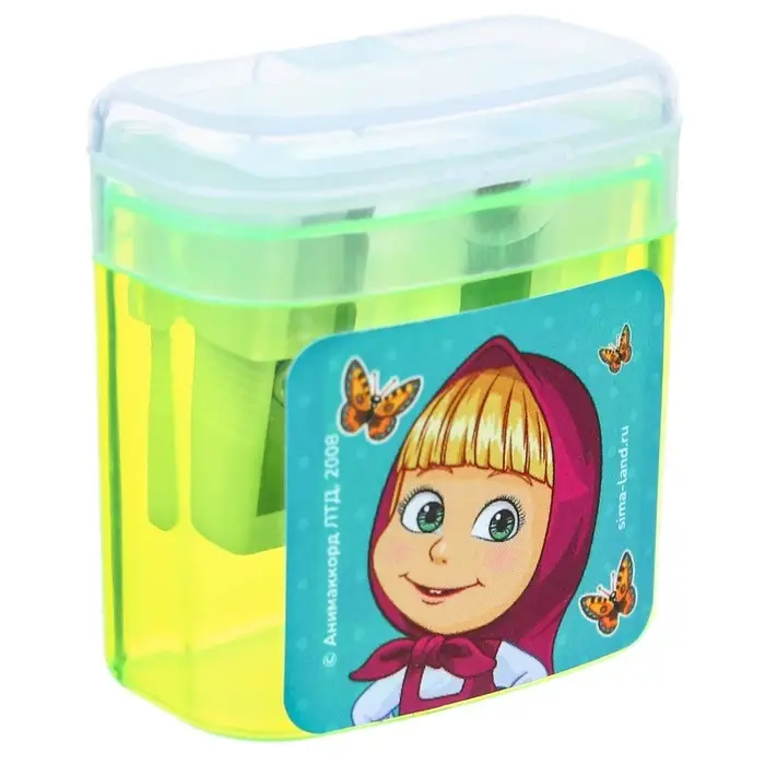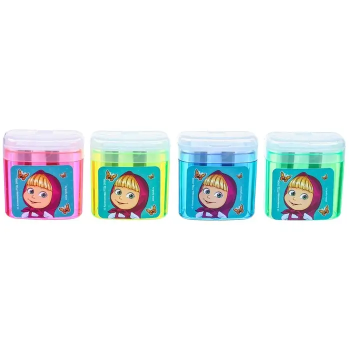 Точилка пластиковая с контейнером, двойная, МИКС, «Маша и медведь»