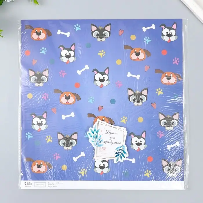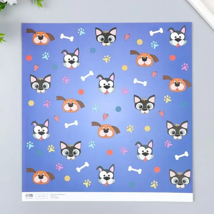 Бумага для скрапбукинга "Пёсики" плотность 180 гр 30,5х32 см