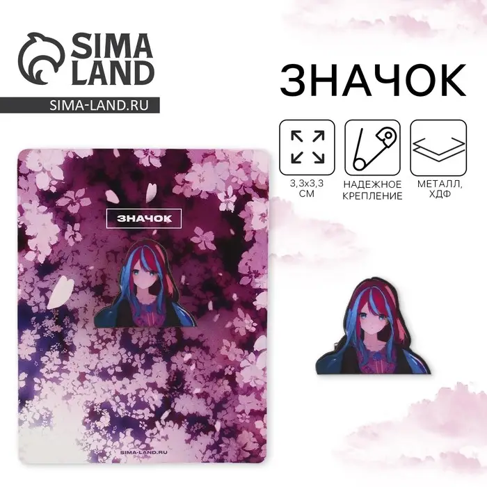Значок деревянный «Девушка в цветах», аниме , 3,3 х 2,8 см - яркий элемент, который порадует любого.
