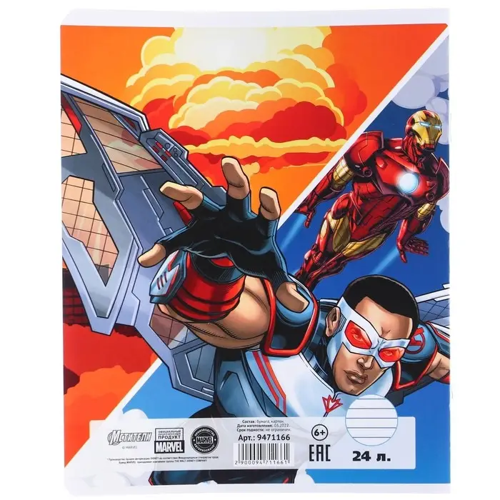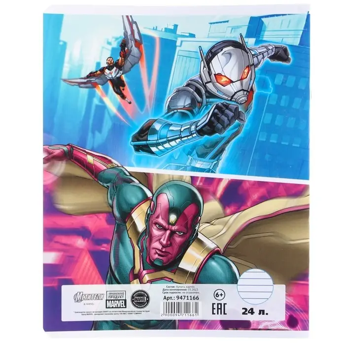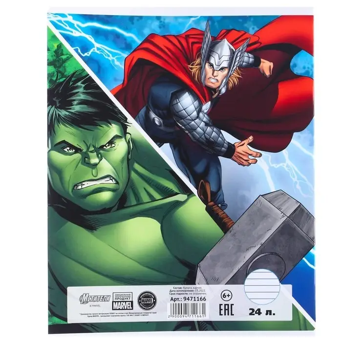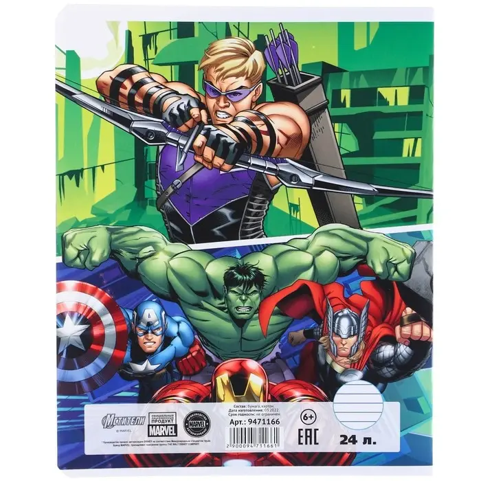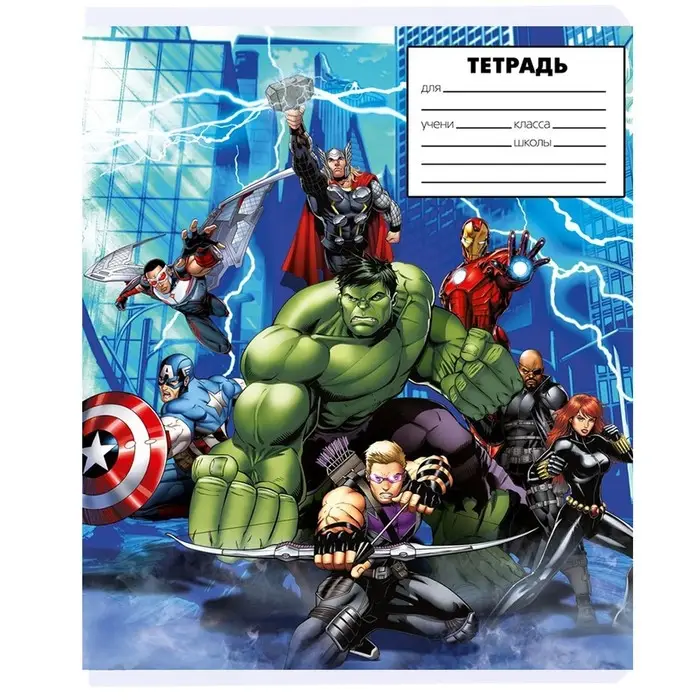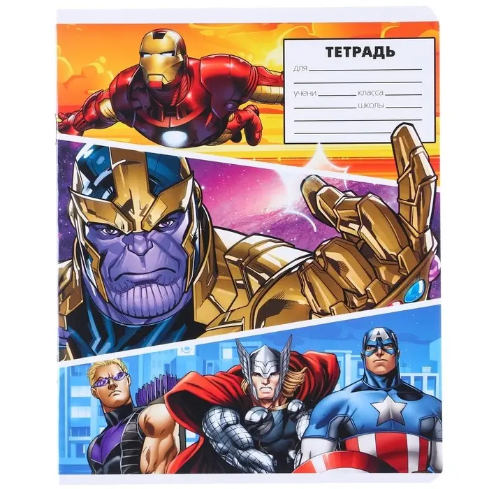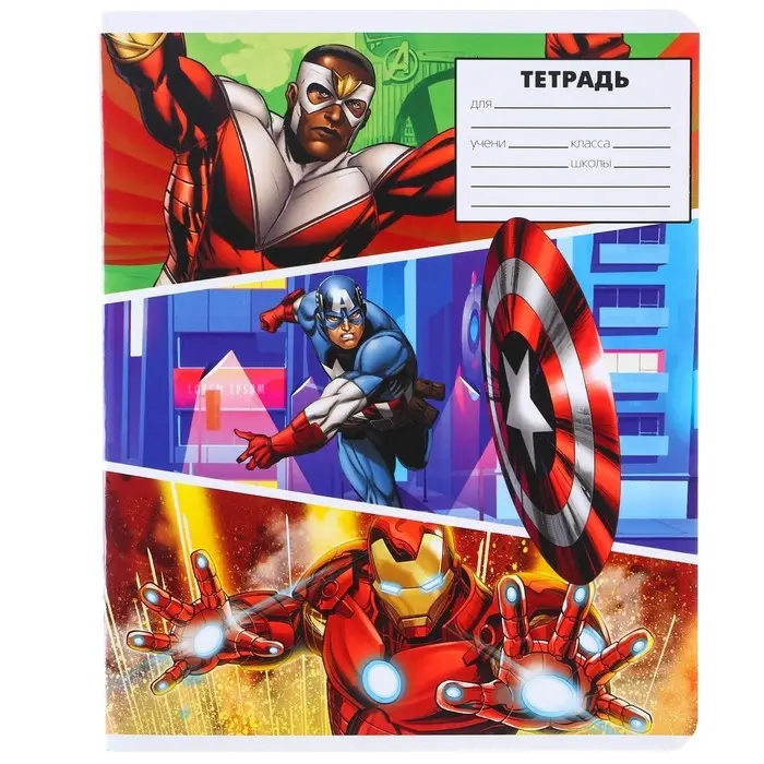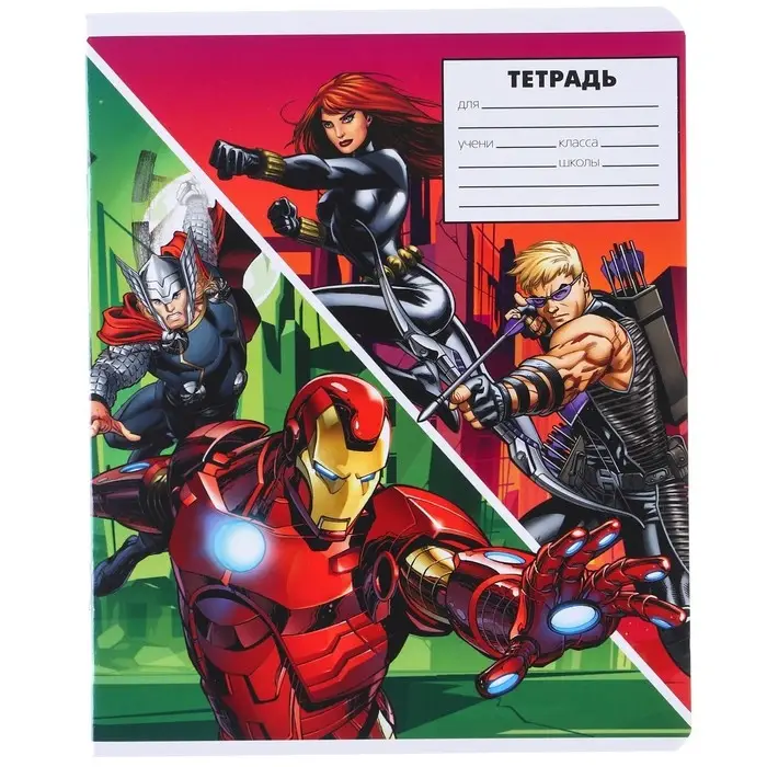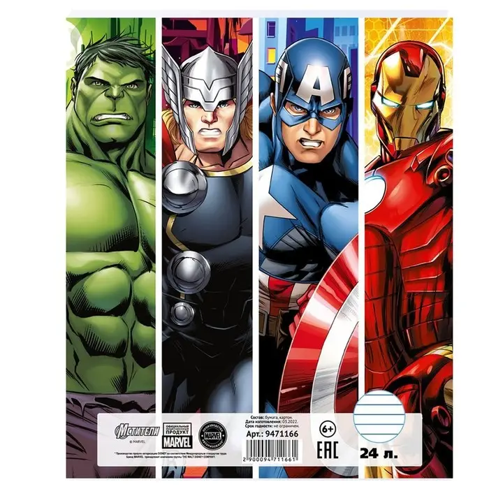 Тетрадь в линейку 24 листа, 5 видов МИКС, обложка мелованный картон, «Мстители»