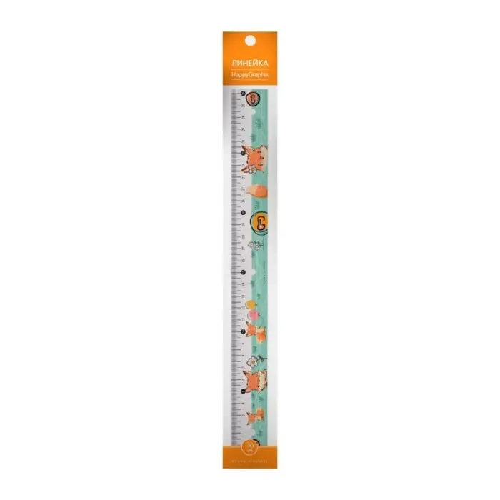 Линейка 30 см HappyGraphix "Лисенок с шариком", с антискользящими вставками
