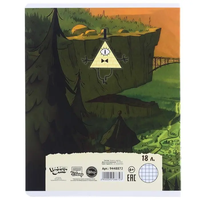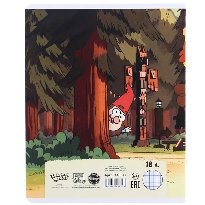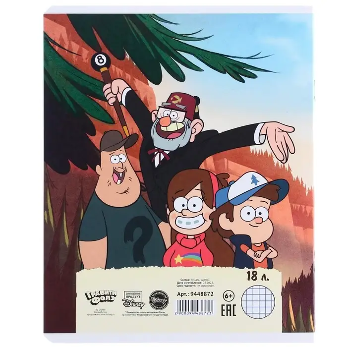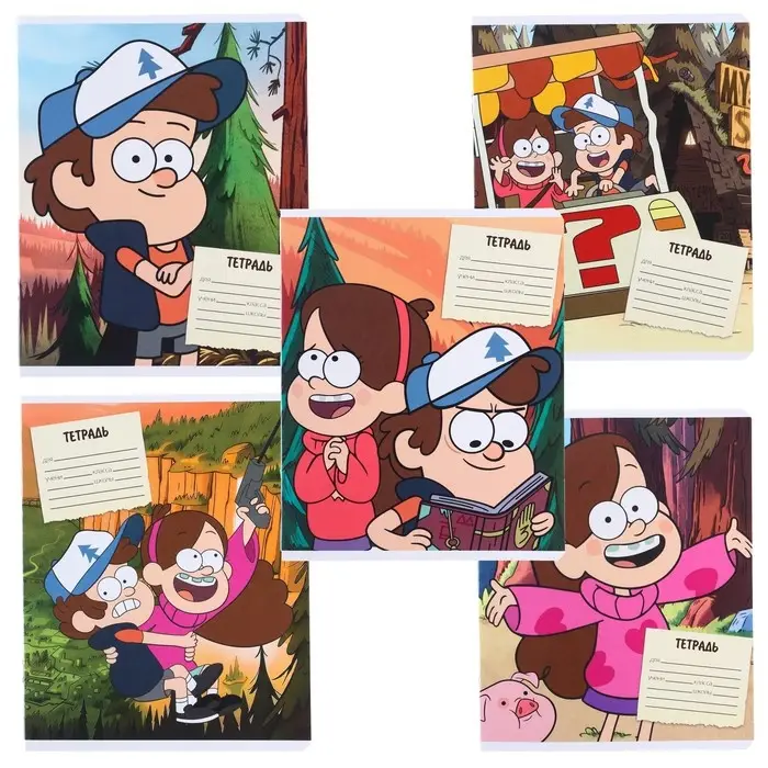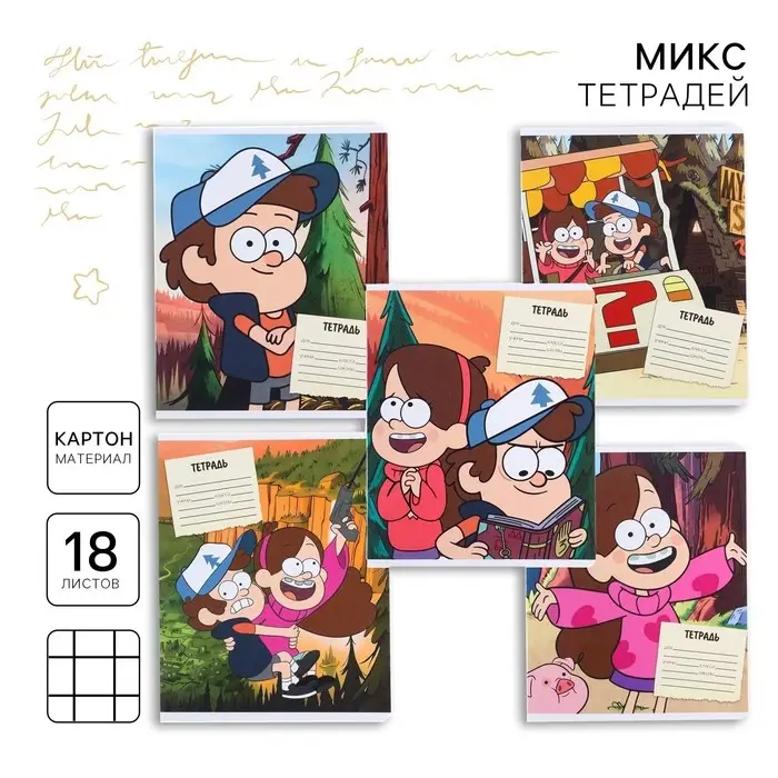 Тетрадь в клетку 18 листов, 5 видов МИКС, обложка мелованный картон, «Гравити Фолз»