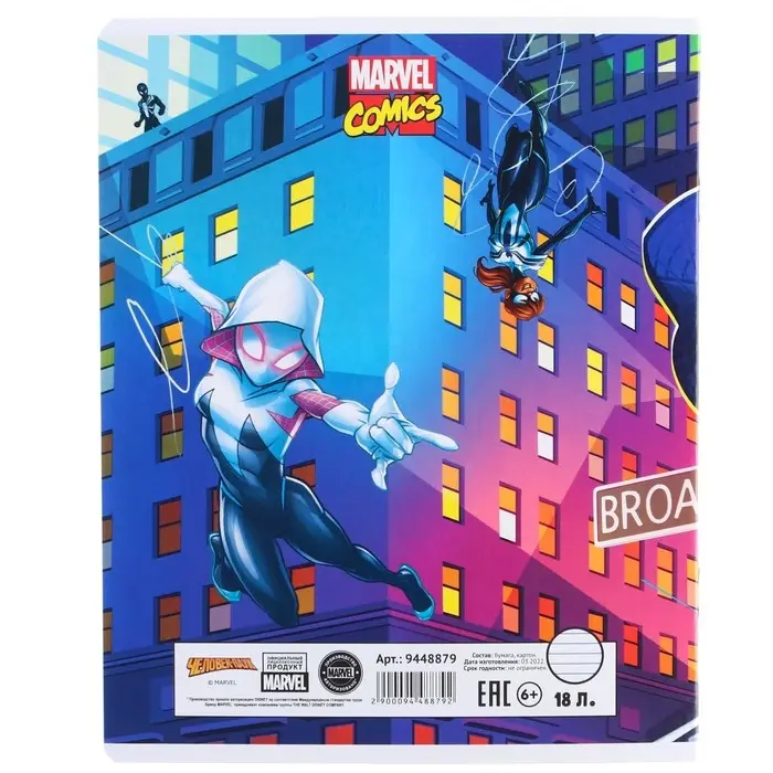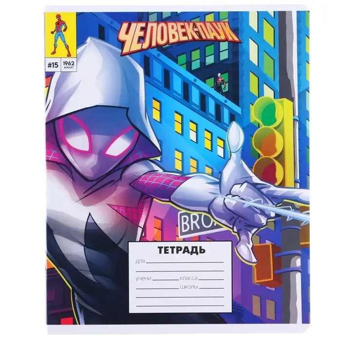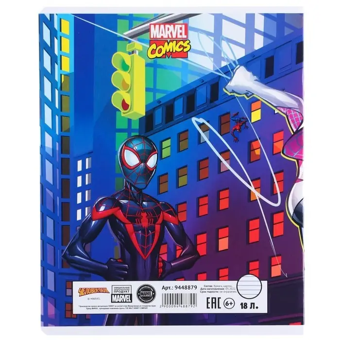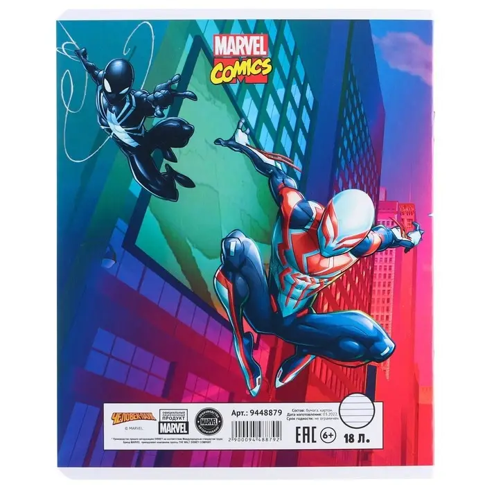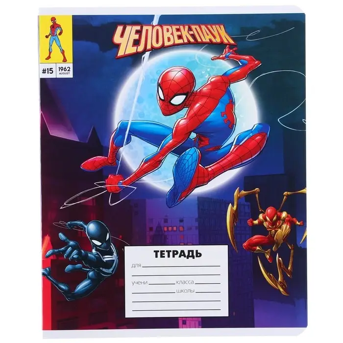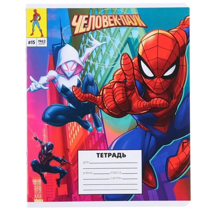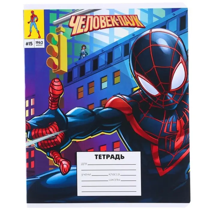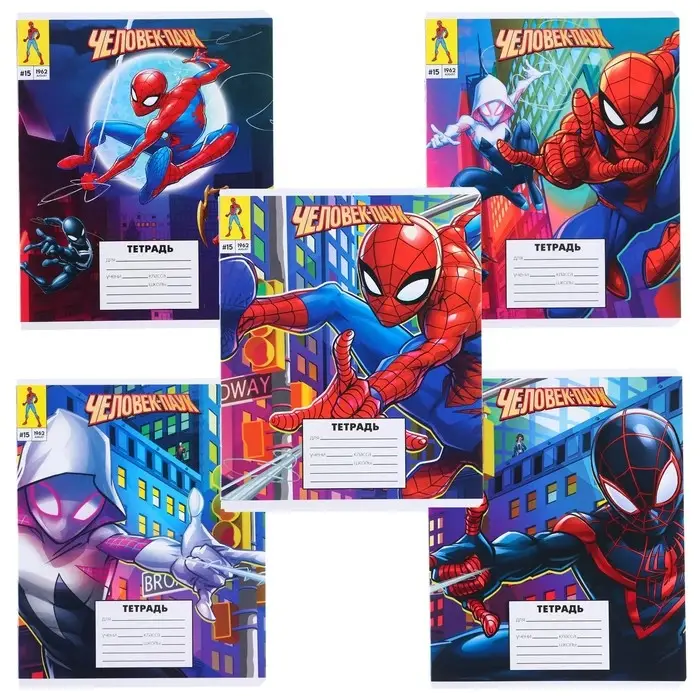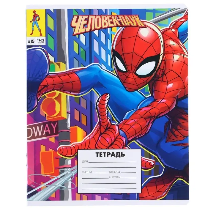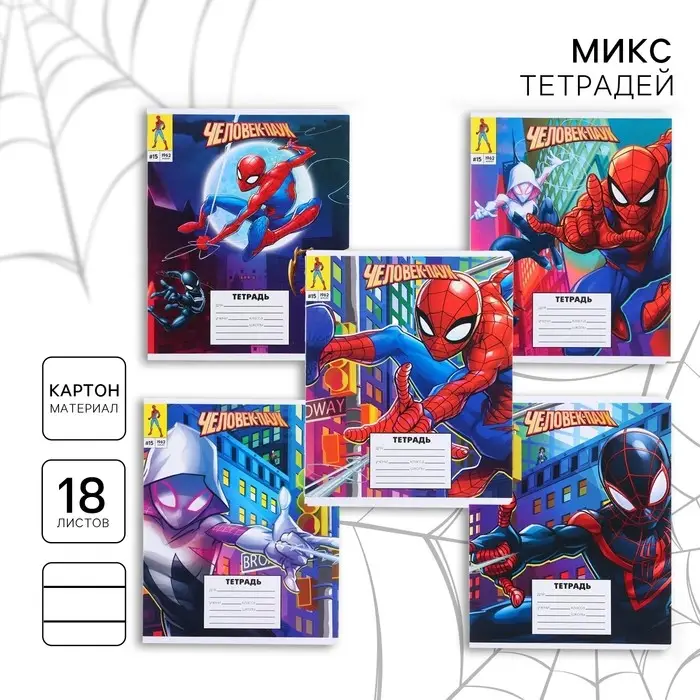 Тетрадь в линейку 18 листов, 5 видов МИКС, обложка мелованный картон, «Человек-паук»