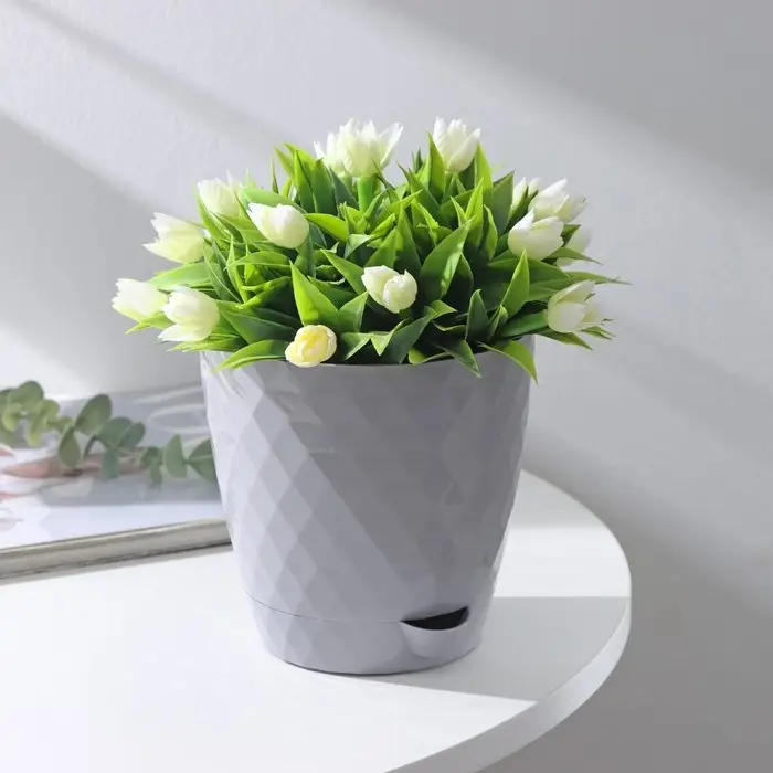 Горшок для цветов с прикорневым поливом «Альянс», 0,4 л, d=10 см, h=8,5 см, мрамор