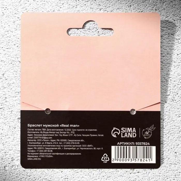 Браслет мужской Real man, длина 24 см