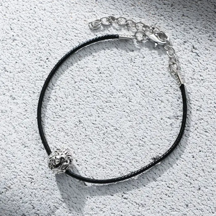 Мужской браслет - это идеальный подарок близкому человеку. Основа браслета выполнена из искусственной кожи, дополнено украшение металлическим элементом. Длина браслета (вместе с цепочкой) - 23 см. Длина браслета (без цепочки) - 17 см.