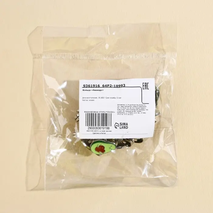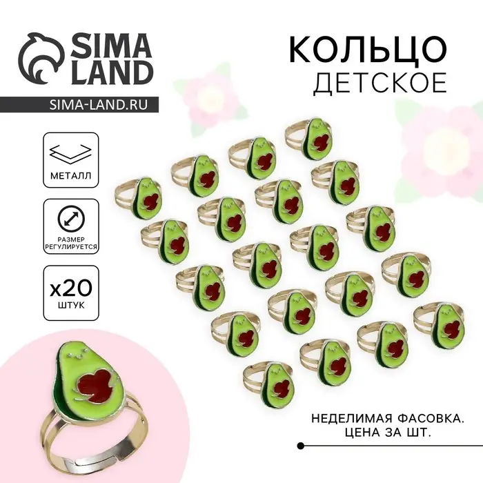 Кольцо детское «Авокадо», 1.5×1×2 см, 20 шт.