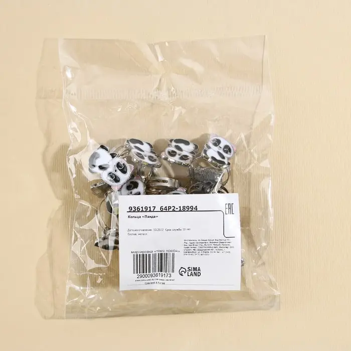 Кольцо «Панда», 1,5 х 1 х 2 см , 20 штук