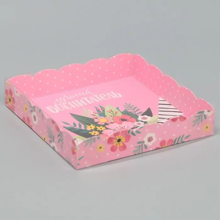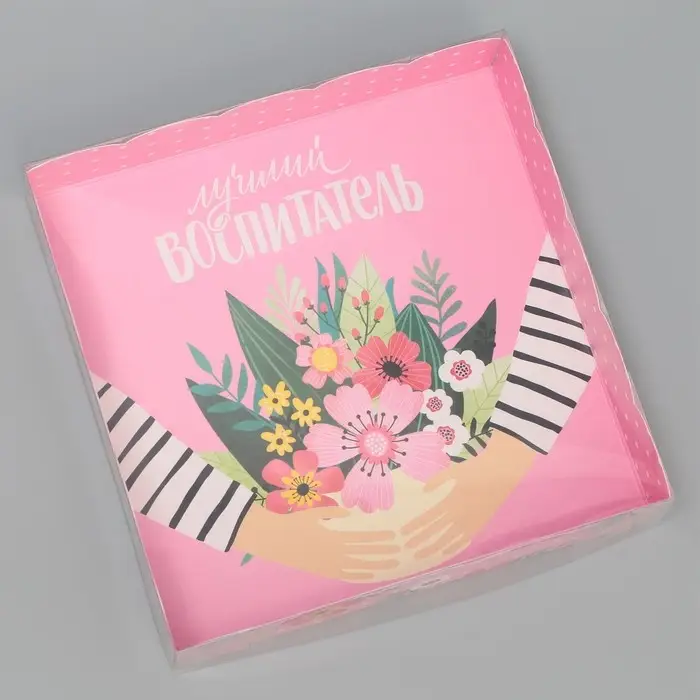 Коробка для печенья, кондитерская упаковка с пластиковой крышкой, «Лучший воспитатель», 15 х 15 х 3 см