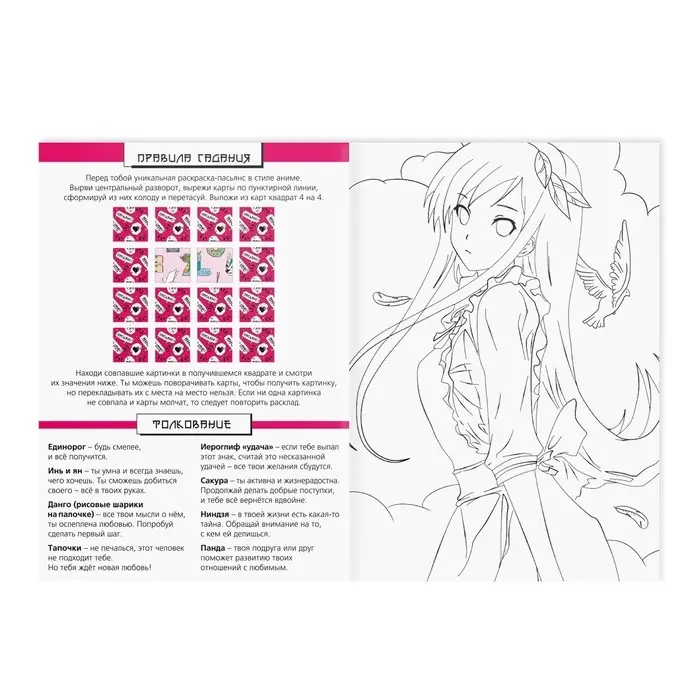 Настольная игра-раскраска «Гадания в стиле аниме», 10 страниц, 7+