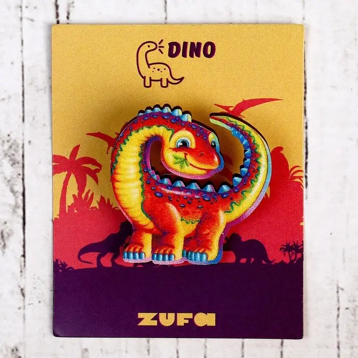 Деревянный значок «Диплодок» станет универсальным аксессуаром для повседневного образа. Этот экологичный аксессуар из натурального дерева с ярким дизайном подойдёт как детям, так и взрослым. Его можно закрепить на сумке, рюкзаке, одежде или головном уборе, добавив индивидуальности вашему стилю.