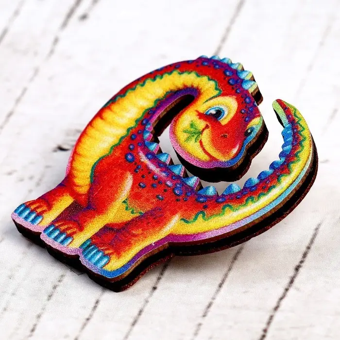 Деревянный значок с динозавром — это не просто украшение, а стильный способ подчеркнуть свою любовь к природе и оригинальность. Универсальная тематика делает его идеальным подарком для любого возраста. Яркие цвета и качественная обработка дерева выделяют его среди аналогичных аксессуаров, а простота использования позволяет легко интегрировать его в повседневный образ.