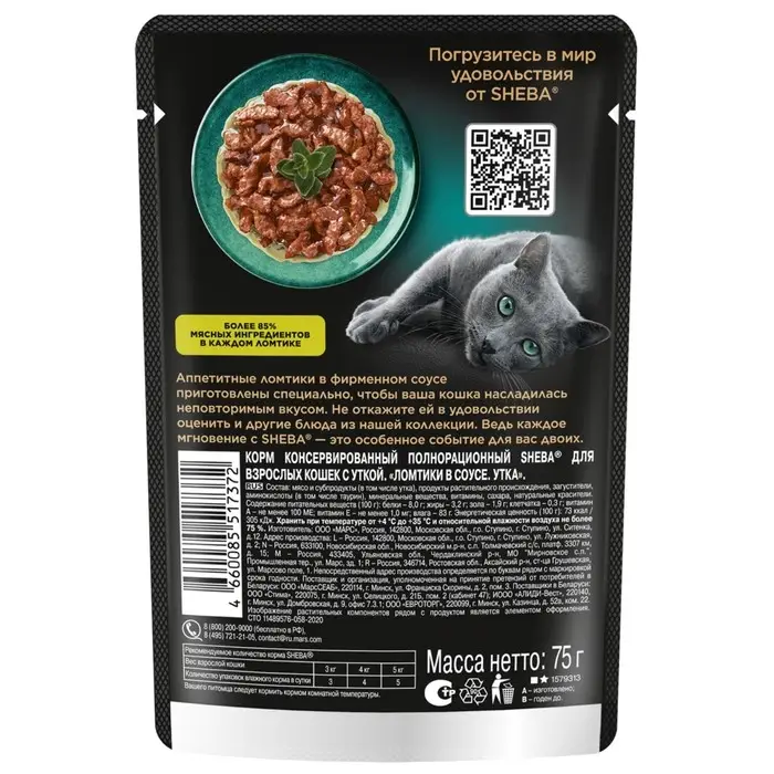 Влажный корм Sheba для кошек, утка, пауч, 75 г