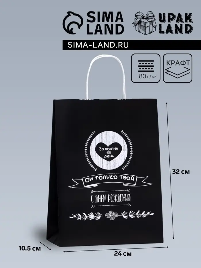 Пакет подарочный «Запомни этот день, он только твой!», 24×10.5×32 см, 1 шт.