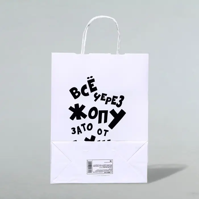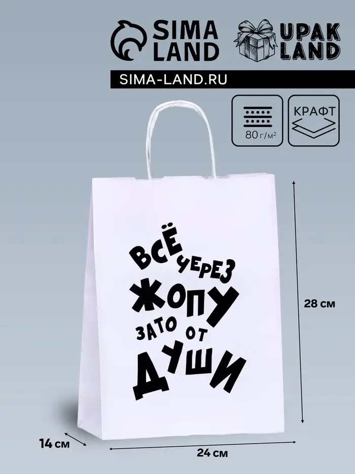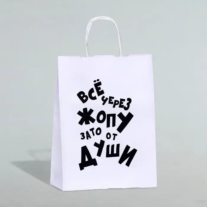 Пакет подарочный с приколами, крафт «От души», белый, 24×14×28 см, 1 шт.